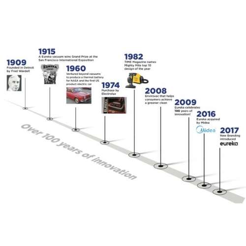 Eureka-pölynimurit perustettiin Detroitissa, Michiganissa vuonna 1909, ja ne ovat olleet amerikkalaisten kodeissa yli vuosisadan. Kehitämme nyt tätä kokemusta innovatiivisella puhdistustekniikalla, joka pitää sinut puhtaana tulevina vuosina.