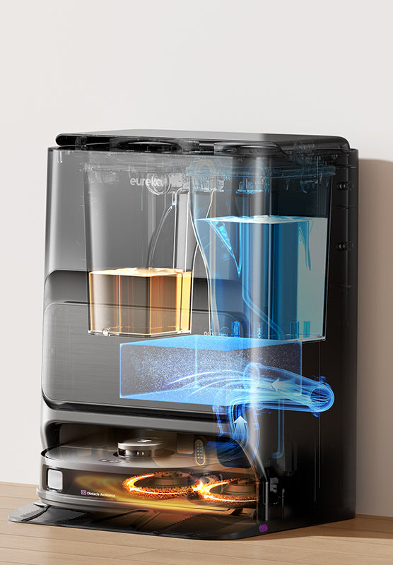 Eureka J12 Ultra on yhdistelmärobotti-imuri, joka tekee kovan siivouksen puolestasi. Itsetyhjentymis-, itsepesu- ja itsekuivausjärjestelmillä sekä 3D-esteiden havaitsemis- ja tekoälytunnistimella varustettu J12 Ultra tekee yhdestä perusteellisesta puhdistuksesta täysin automaattisen ja huolettoman.