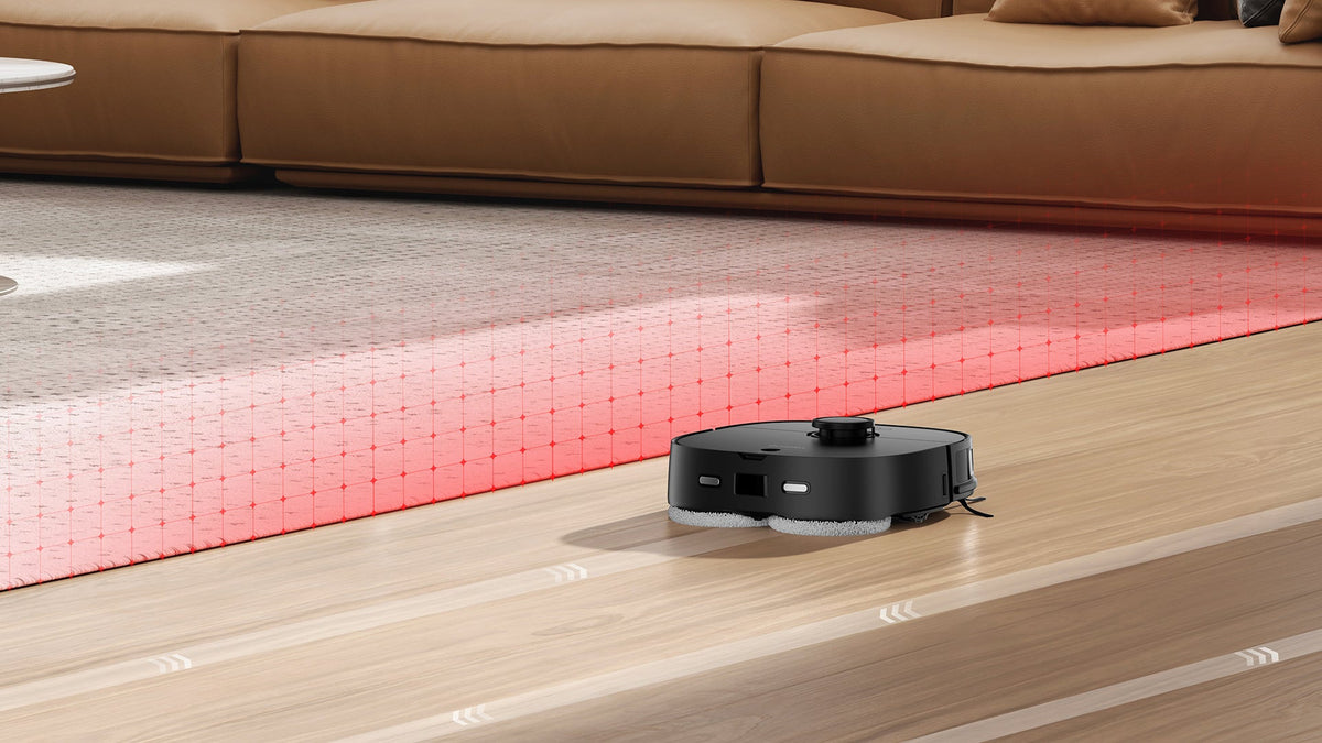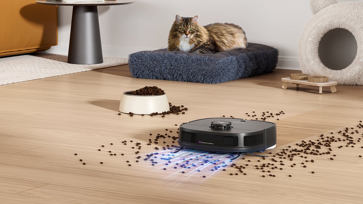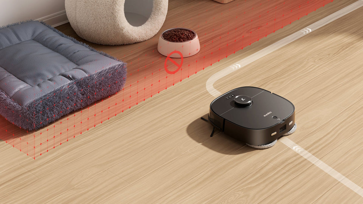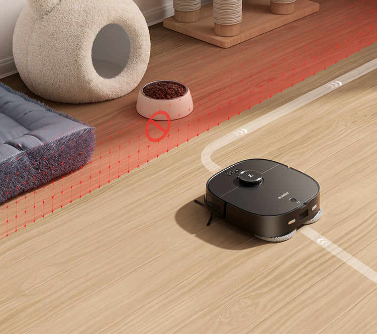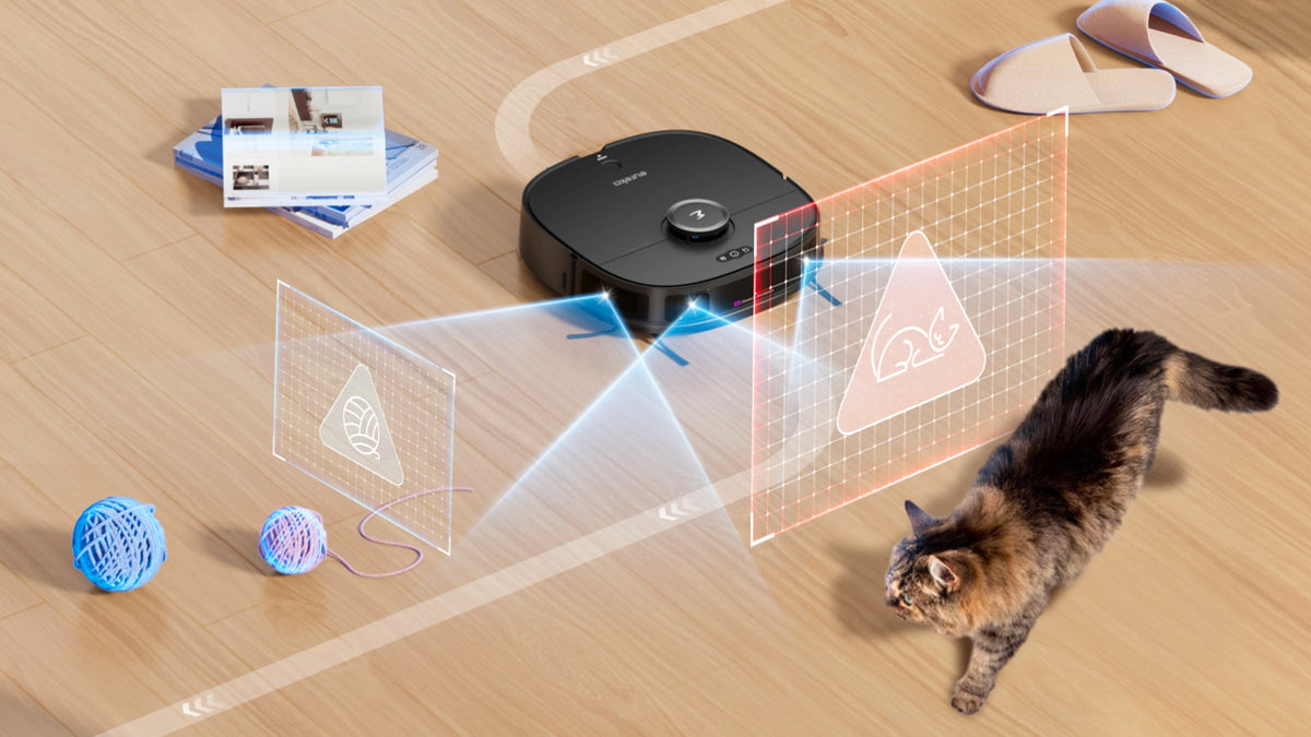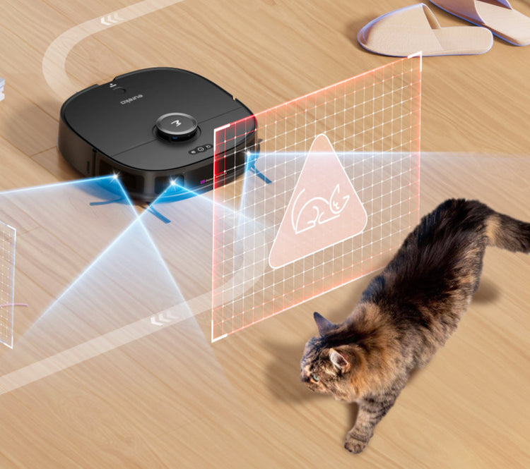 Super Sense -esteen välttämisantureilla J12 Ultra havaitsee lemmikit reaaliajassa välttääkseen niitä ja pitääkseen kotisi rauhallisena.