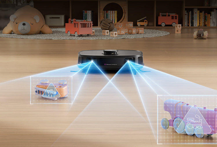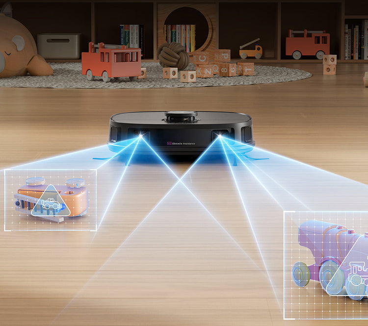 Edistyneen DuoDetect AI™ 3D -esteentunnistuksen ansiosta J12 Ultra tunnistaa älykkäästi huonekalut ja esteet tyypin mukaan.