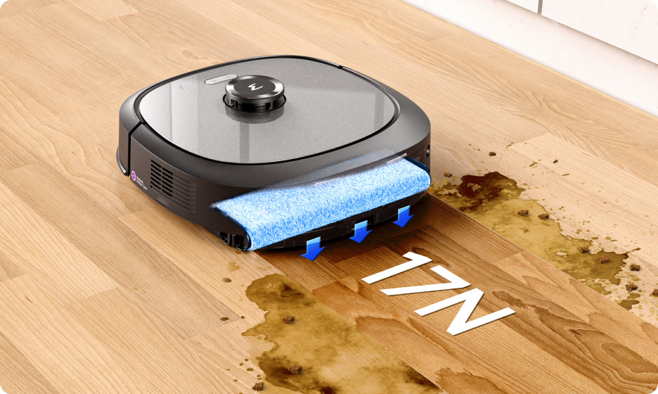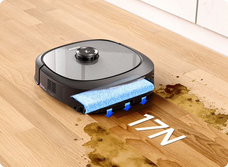 Puhdistaa lattioita vahvalla 17 N:n alaspaineella poistaakseen pinttyneen lian ja roiskeet perusteellisesti.