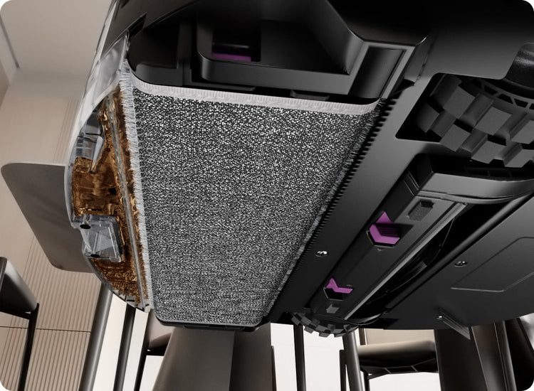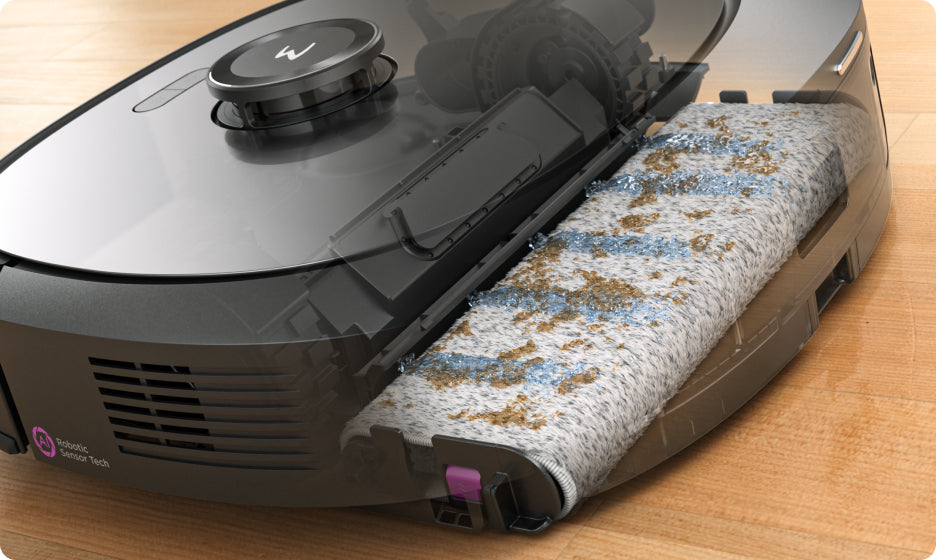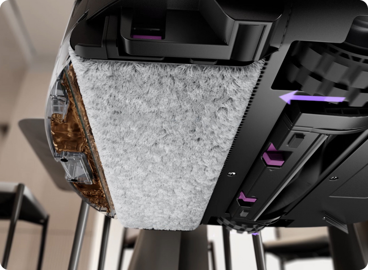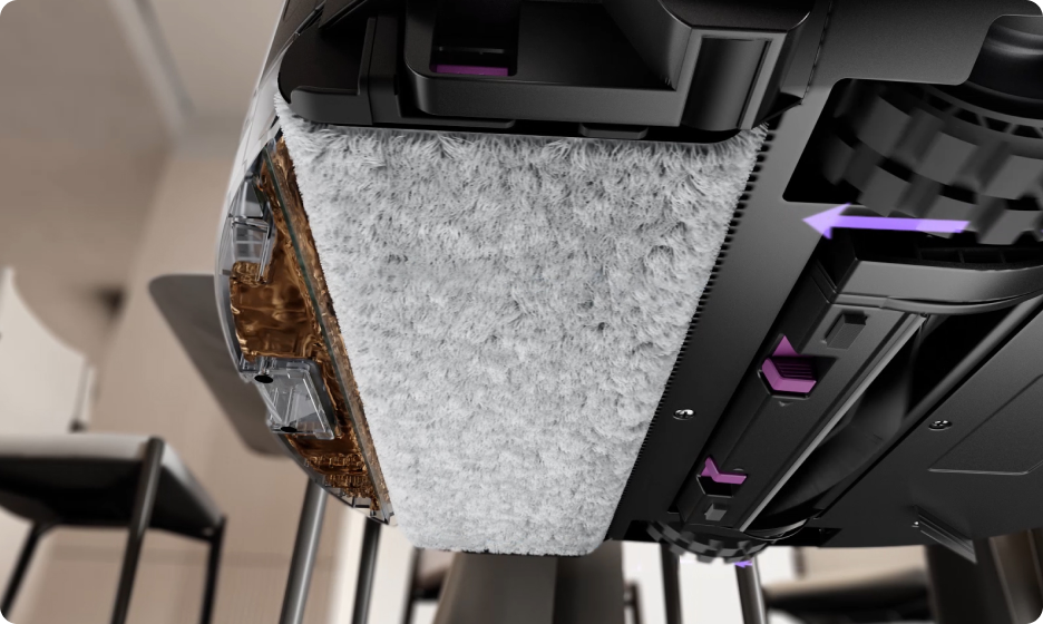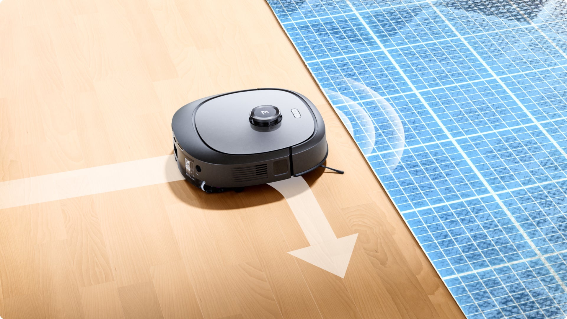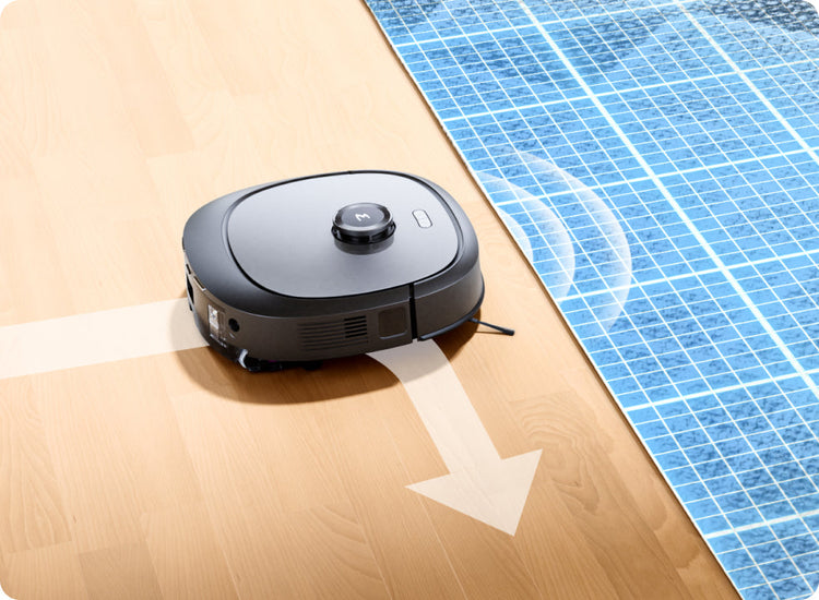 Nauti kuivista matoista ultraäänimattotunnistuksen ja älykkään mopin säädön ansiosta. Kun J20 osuu kokolattiamattoon, se vaihtaa mopin ei-imukykyiselle puolelle pitääkseen ne kuivana.