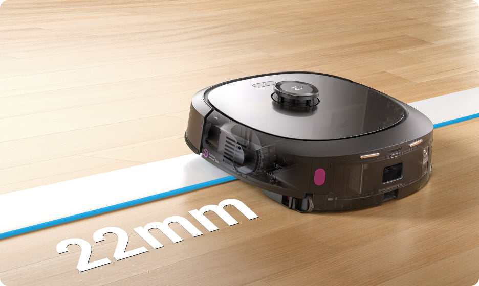 22 mm:n estevara varmistaa, että J20 voi luotettavasti kiivetä esteiden yli päästäkseen huoneisiin ja poistuakseen niistä ja puhdistaa automaattisesti koko kotisi.