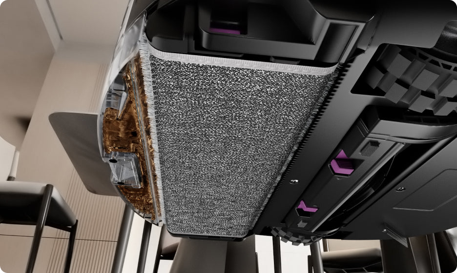 Integroitu 250 ml:n jätesäiliö kerää jatkuvasti mopilla kaavitut jäämät ja likaisen veden varmistaakseen, että ne poistetaan kokonaan lattioistasi.