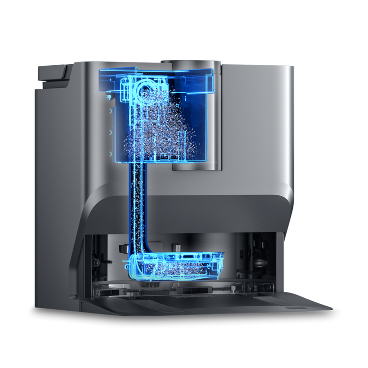 Voit puhdistaa kädet vapaana jopa 75 päivää edistyneen automaattisen tyhjennysjärjestelmän ansiosta, joka kerää pölyn, lian ja lemmikkieläinten karvat tukiasemasta.