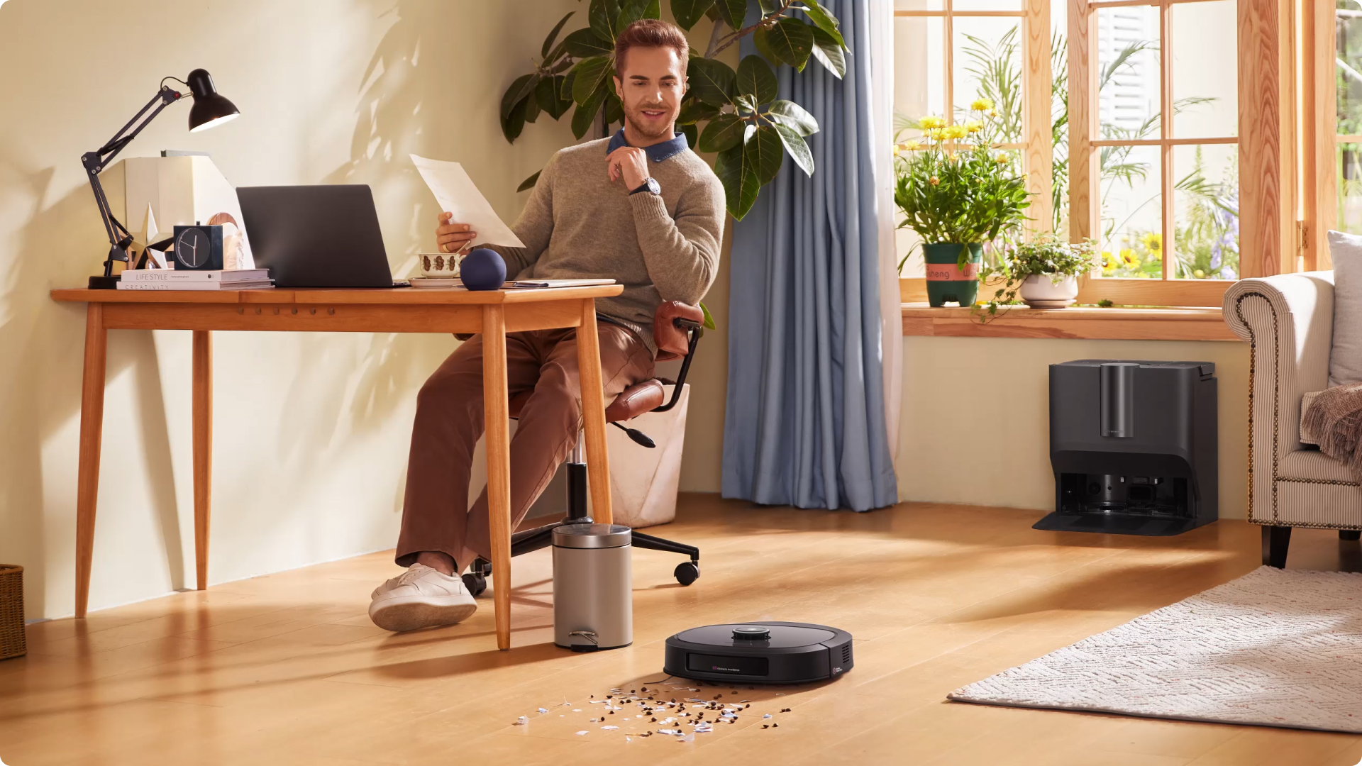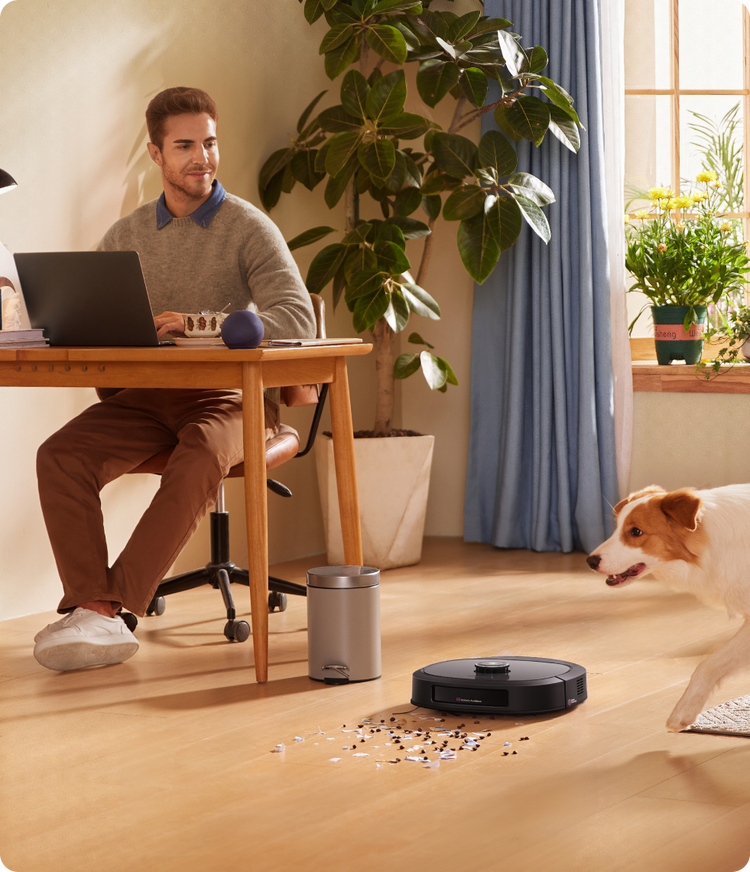 Ääniohjaustuen ansiosta automaattinen puhdistus on kielesi kärjessä. Aloita tai keskeytä puhdistus tai käske robottia latautua. Sinun tarvitsee vain kysyä Siriltä, ​​Amazon Alexalta tai Google Assistantilta. Täydellinen handsfree-siivoukseen, kun teet ruokaa, askartelet tai olet kiireinen perheesi kanssa.