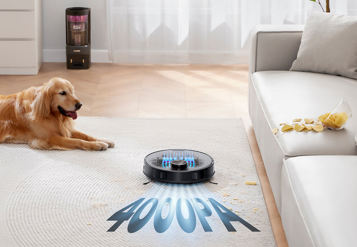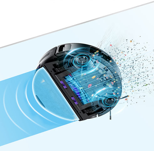 Nauti jopa 45 päivän jatkuvasta puhdistuksesta suurikapasiteettisen läpinäkyvän pölysäiliön avulla. Pussittoman rakenteen ansiosta näet yhdellä silmäyksellä, kuinka paljon likaa robottisi kerää, joten tiedät tarkalleen, milloin on aika tyhjentää se. Sano hyvästit kertakäyttöpusseille ja hei vaivattomaan huoltoon!