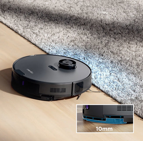 E10s on varustettu ultraäänimattotunnistimella ja 10 mm:n moppiiskulla, joten se tunnistaa tehokkaasti matot ja estää niitä kastumasta. Moppi nousee automaattisesti kynnysten yli ja palaa latausalustalle jättäen juuri mokatut lattiat tahrattomina.