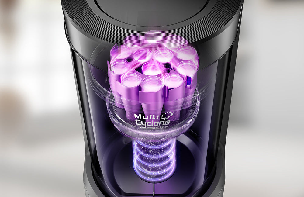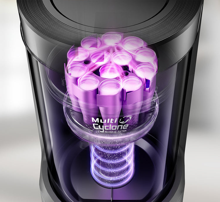 13 syklonikartion ansiosta tämä pölynimuri erottaa 98 % pölystä ja lialta ennen kuin ne saavuttavat suodattimen, mikä pidentää suodattimen käyttöikää ja ylläpitää imutehoa.