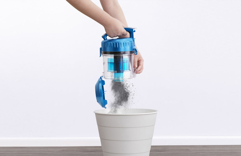 Vain napin painalluksella voit tyhjentää lian 1,5 litran pölysäiliöstä, kun olet lopettanut puhdistuksen.